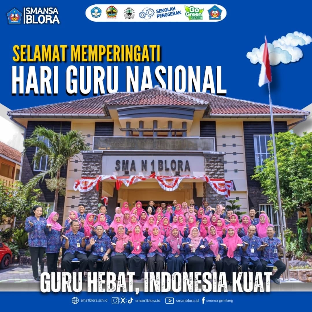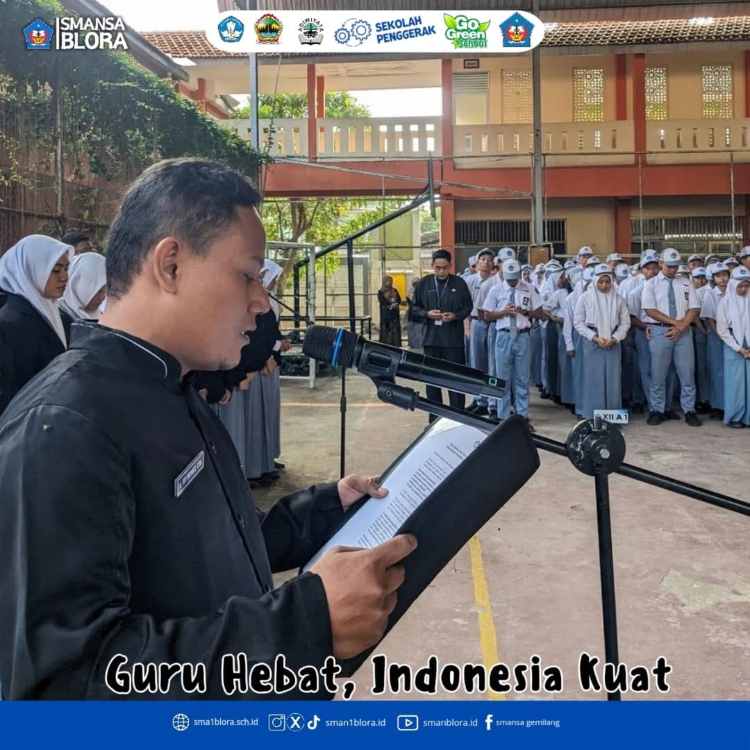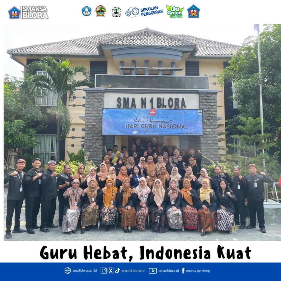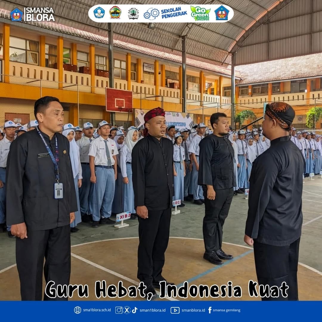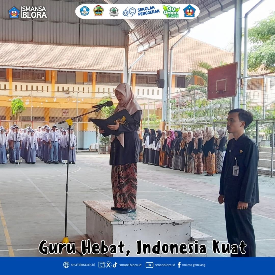 25 November 2024 bertempat di Indoor, SMA Negeri 1 Blora melaksanakan upacara dalam rangka Hari Guru Nasional. Upacara hari ini diikuti oleh Kepala SMA Negeri 1 Blora Dra. Yuni Ni’wati, M.Pd, tenaga pendidik, tenaga administrasi sekolah dan juga seluruh siswa siswi kelas X,XI dan XII. Dan sebagai petugas upacara hari ini adalah Bapak Ibu Guru SMA Negeri 1 Blora